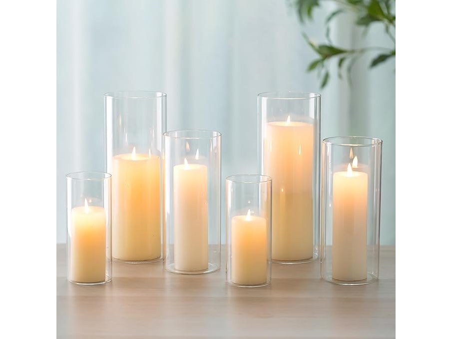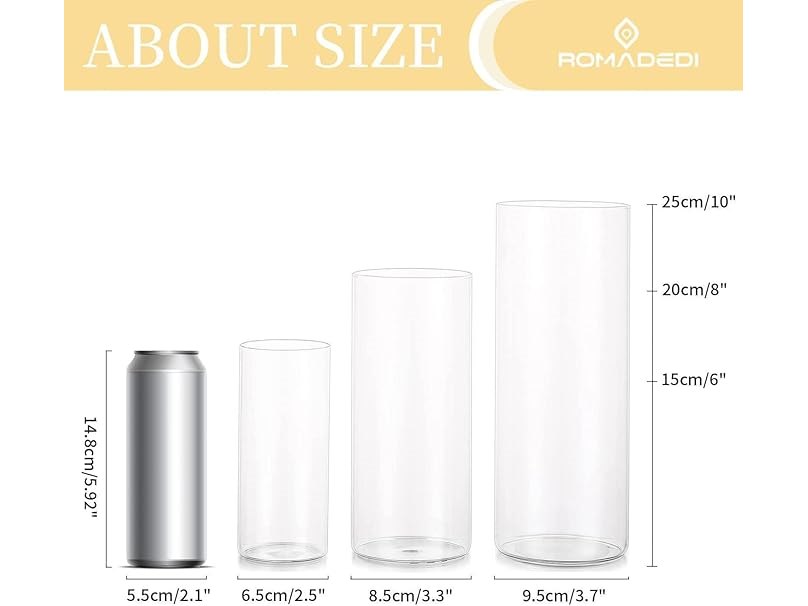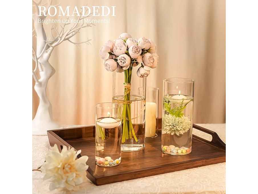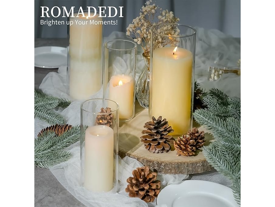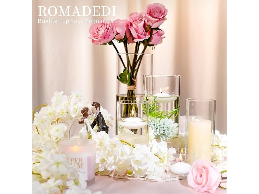 Ongebruikt, compleet, ok, Romadedi Orkaan Kaarsenhouders Glas Clear - Voor Pijler Kaarsen Set van 3 Cilinder Bloem Vaas Drijvende Votive Bruiloft Tafel Centerpiece Home Decor 15/20/25cm, B0B9BW2R4R