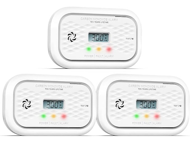 Ongeopend, ZA326 H01 Koolmonoxidemelder, 10 jaar batterij, draagbare CO-detector met lcd-display, gecertificeerd EN 50291, 85 dB alarmvolume, 3 stuks in verpakking , B0CF9QNNVK