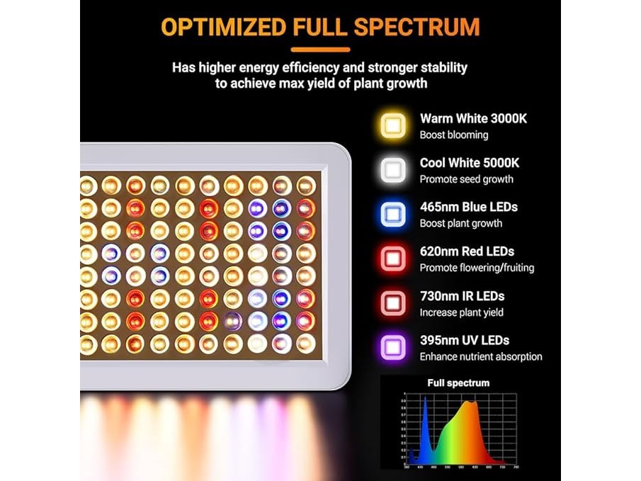 Ongeopend, DragonLight BW3000 Led-groeilamp, volledig spectrum met UV IR, dubbele chips plantenlamp, led met 8/12/16 uur timer, 3 meter kabel voor broeikassen en kamerplanten, groenten, bloementeelt , B0D2VZQW3Z
