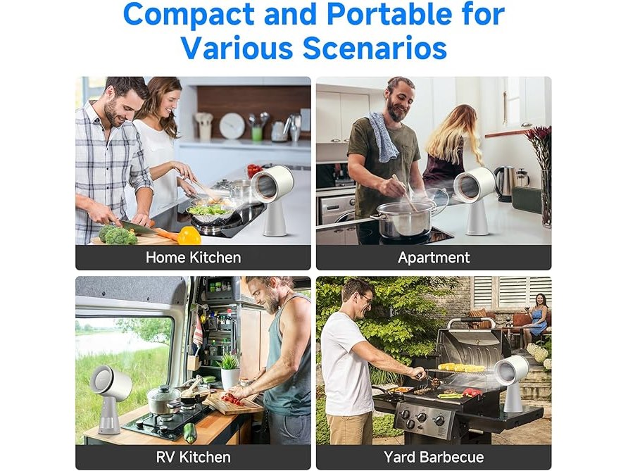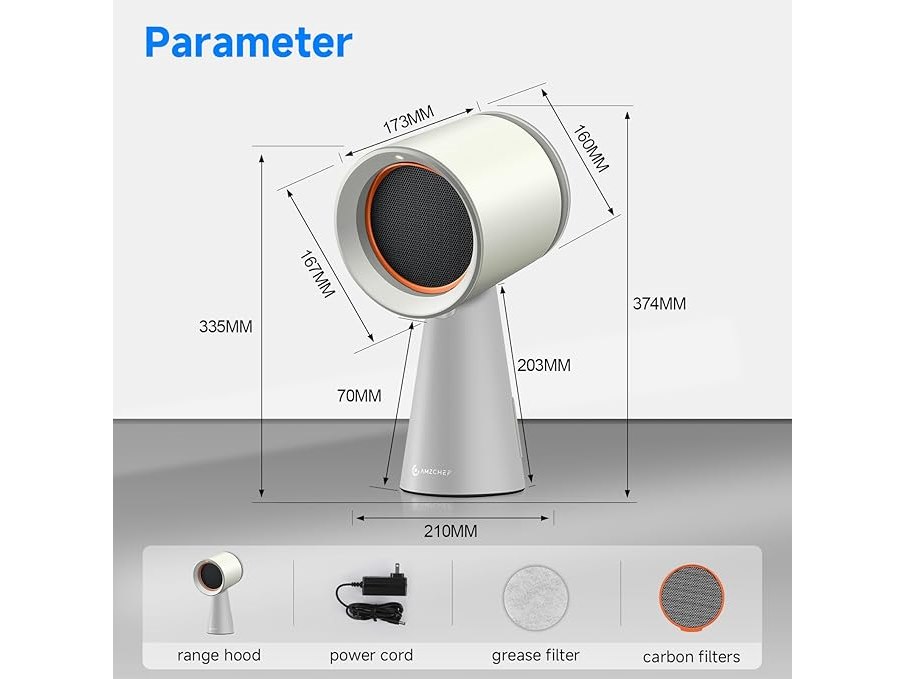 Ongebruikt, getest en werkend, AMZCHEF Mobiele afzuigkap, verplaatsbare afzuigkap, geen installatie nodig, met 3 snelheidsstanden en meerdere filtersystemen, LED-verlichting, grote olieopvangbak, laag geluidsniveau (wit), B0F9FK8WP1