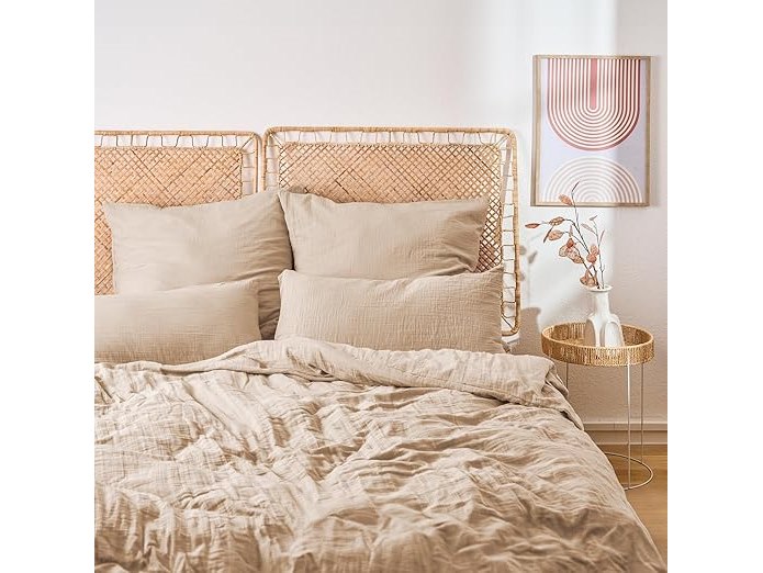 Ongebruikt, volledig, ok, Blumtal bedlinnen mousseline( 200x220 cm) - OEKO-TEX gecertificeerd bedlinnen 200x220 katoen - dekbedovertrek 200x220 + 2x kussensloop 40x80 - bedlinnen 200x220 mousseline - bedlinnen zomer taupe, B0D6Z4TRH7