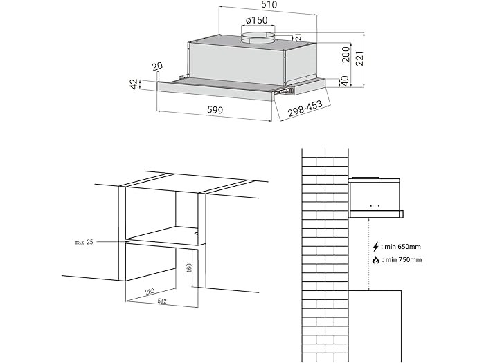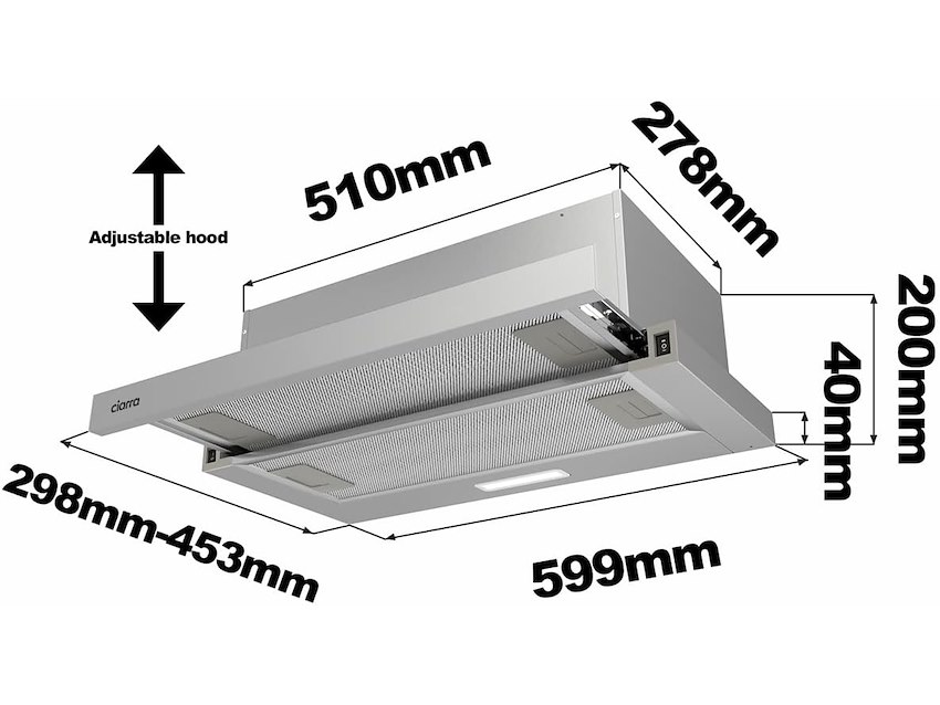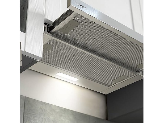 Ongebruikt, getest en werkend, volledig, ok, CIARRA CBCS6906D Afzuigkap voor telescopische lade, 60 cm, 370 m³/uur, klasse A, geïntegreerde afzuigkap, 2 snelheden, met ledverlichting en vetfilter, B08CR7WKYP