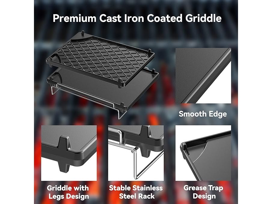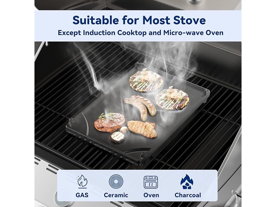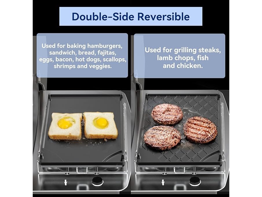 Ongebruikt, ok, Onlyfire gietijzeren zijfornuis, universele omkeerbare grillpan en koekenpan met afneembaar roestvrijstalen frame, B09TKSWNFR