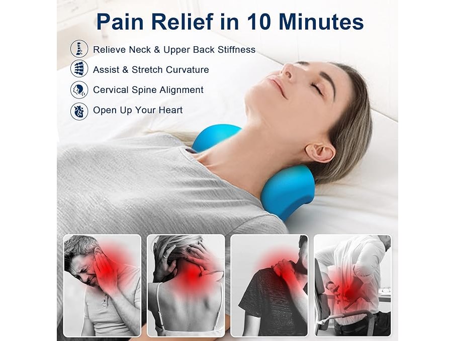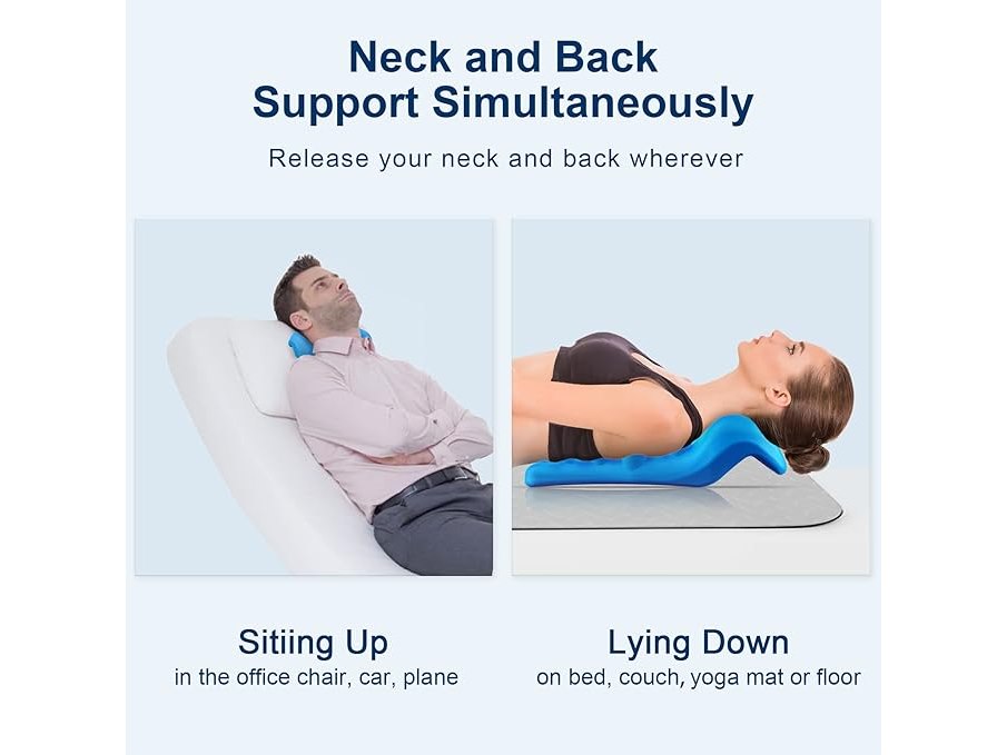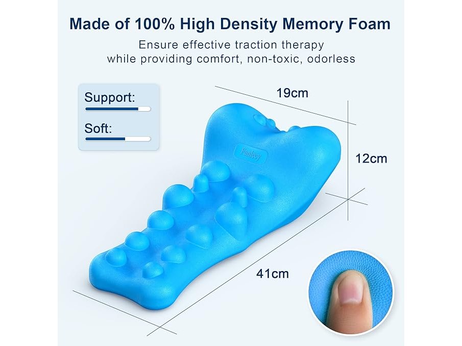 Ongeopend, Nek- en schouderontspanner met massagetip voor de bovenrug, nektractieapparaat, nekstrekker voor verlichting van kaakpijn en uitlijning van de nekwervelkolom, chiropractisch kussen, beige, B0DD7GL283
