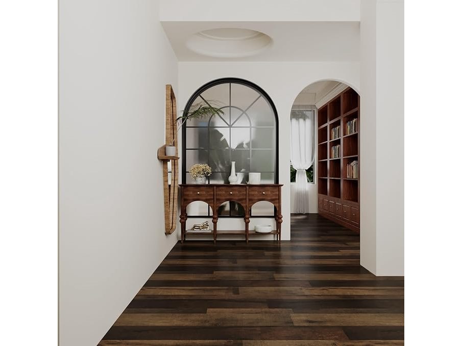 Ongeopend, ok, 2 x 4 Homease PVC-vloerbedekking, zelfklevende houtlook, vinylvloer, vintage look, waterdicht, op maat te snijden, voor slaapkamer, keuken, woonkamer, 60 x 1000 cm, donkere retrostijl