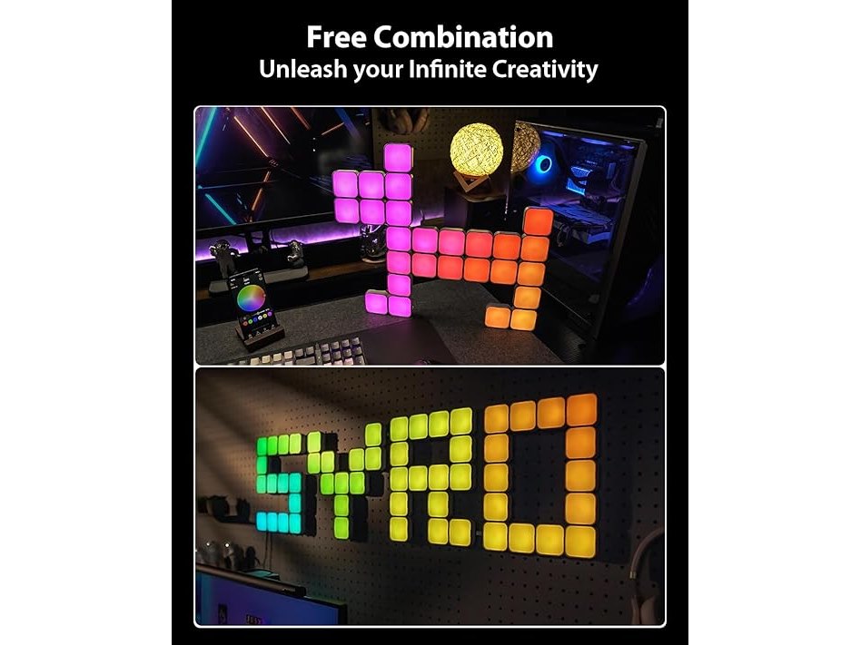 Ongeopend, ok, LinkedSparx 3D vierkante lichtpanelen, intelligente RGB LED-wandlampen voor gaming met app en afstandsbediening, coole muzieksynchronisatie voor woonkamer, slaapkamer, speelkamer (verpakking van 24), B0CQ75C489