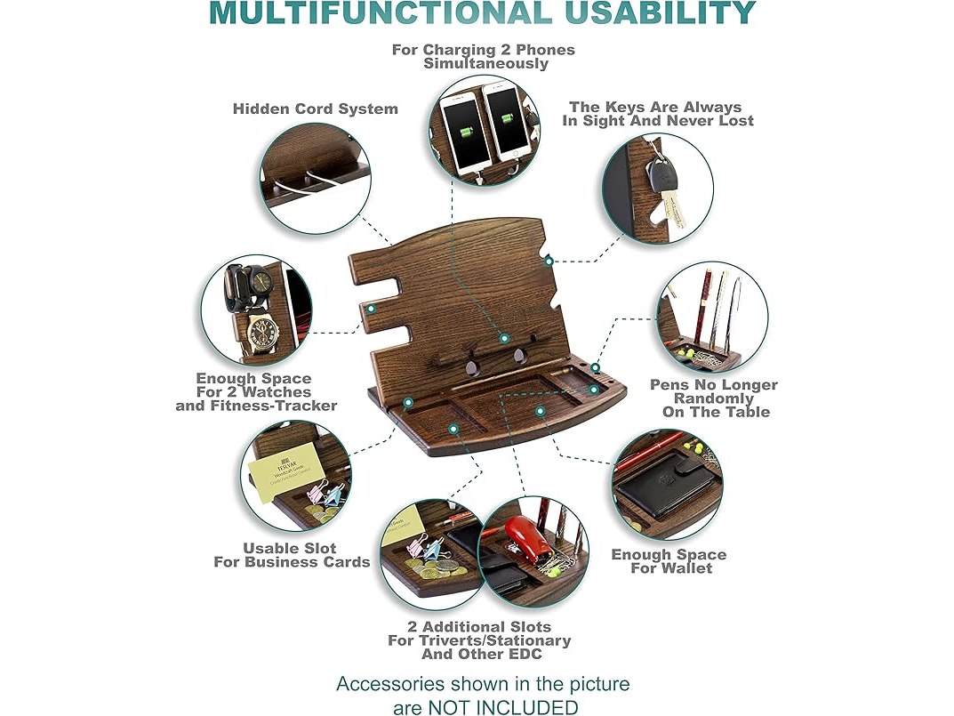 Ongeopend, in seal, Teslyar Dubbel Houten Docking Station Sleutelhouder Portemonnee Stand Organisator Portemonnee Mannelijk Gadgets Massief As, B0842M4Y73
