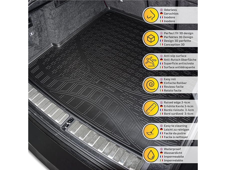 Ongebruikt, ok, J&J AUTOMOTIVE | Rubberen kofferbakmat, kofferbakschaal, voertuigspecifiek voor Octavia 3, stationwagen 2013-2019, antislip, perfecte pasvorm, oprolbaar, zwart, B07XJ3YMQK