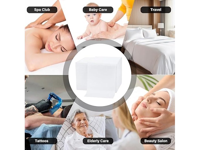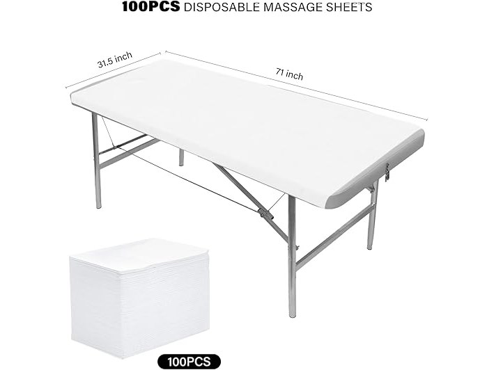 Ongeopend, Verpakking van 100 wegwerpbare massagebedlakens, wegwerpbare massagetafel voor massagesalons, spa's, tatoeagestudio's en hotels, B0DC3NHXFV