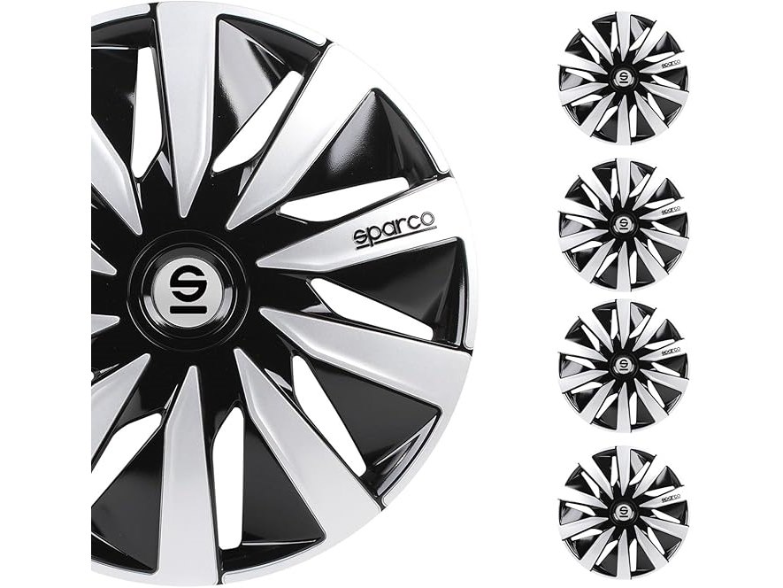 Ongebruikt, ok, licht beschadigde verpakking, SPARCO Wieldoppenset SPC1691BKSV Lazio decoratieve wielers, 16 inch, zwart/zilver, B01NCN028O
