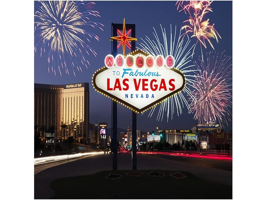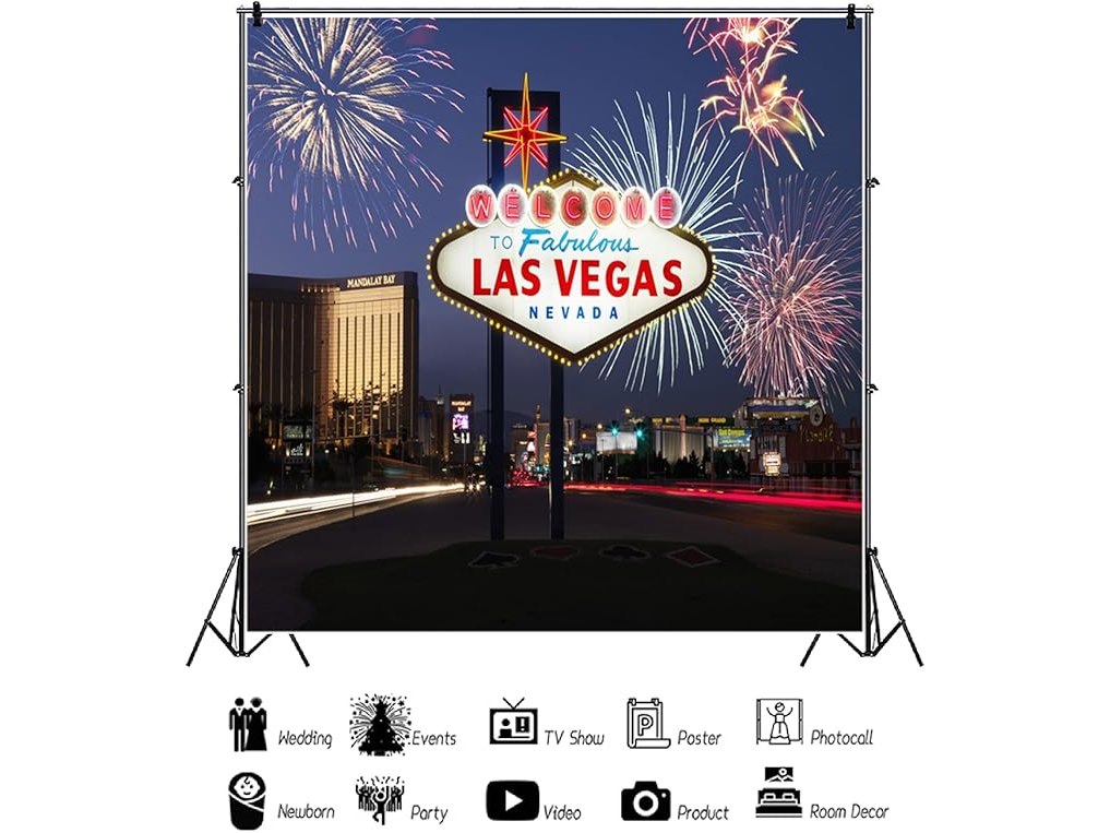 Ongeopend, in seal, exclusief statief, YongFoto 3 x 3 m vinyl fotoachtergrond met 'Welkom bij het vuurwerk van Las Vegas'. Fotografieachtergrond voor portretfoto's, feestjes, kinderfoto's, bruiloften, fotostudio-rekwisieten, B07BT1PSGZ