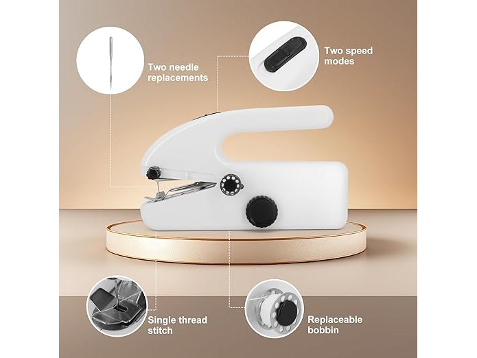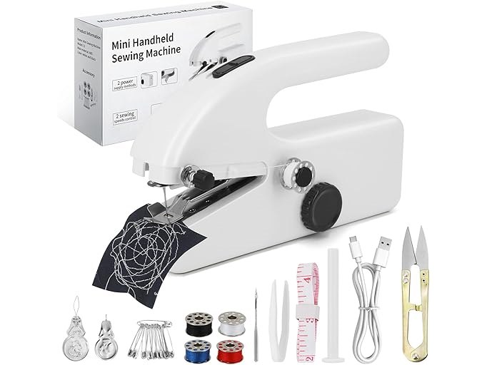 Ongebruikt, werkt, ok, Handnaaimachine - Mini draagbare elektrische naaimachine voor beginners, eenvoudig te gebruiken, snelle steken voor stoffen en kleding, doe-het-zelf, thuis en op reis, compact en lichtgewicht, B0DZBMW6RN