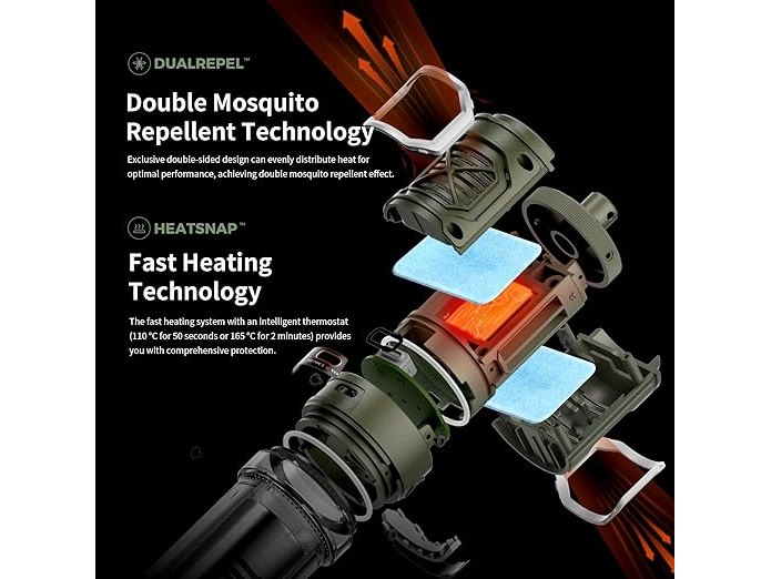 Minieme gebruikssporen, getest en werkend, ok, originele verpakking ontbreekt, FLEXTAILGEAR Draagbaar muggenspray met 400 lm campinglamp, 4800 mAh batterij, IPX5 waterdicht, 165 ℃ dubbelzijdige verwarming, muggenspray voor buiten [GEEN plaat] 1 stuk (verpakking van 1) Olijfgroen, B0C4KXTDVH