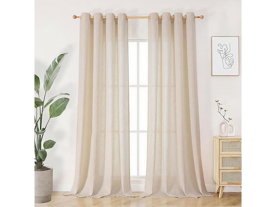 Ongeopend, Joydeco Linnen gordijnen met inslagringen, natuurlijk linnen (bevat echt linnen), 225 x 132 cm (h x b), 2 stuks, voor woonkamer, slaapkamer, doorschijnende gordijnen, B0D3FXG3NB