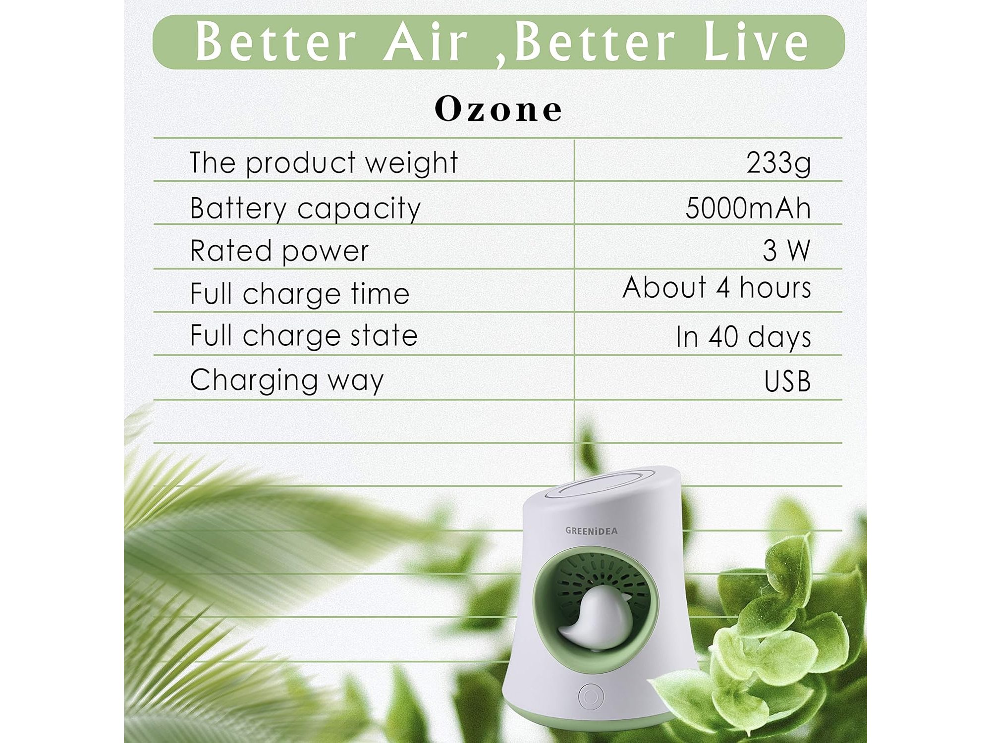Ongeopend, ok, Greenidea Smart Luchtreiniger, Werkt op batterijen, Ozone & negatieve ionen luchtreiniger, Koelkast, Schoenenkast, Toilet, Natte kledingkast-deodorant, B09KL5D8FL