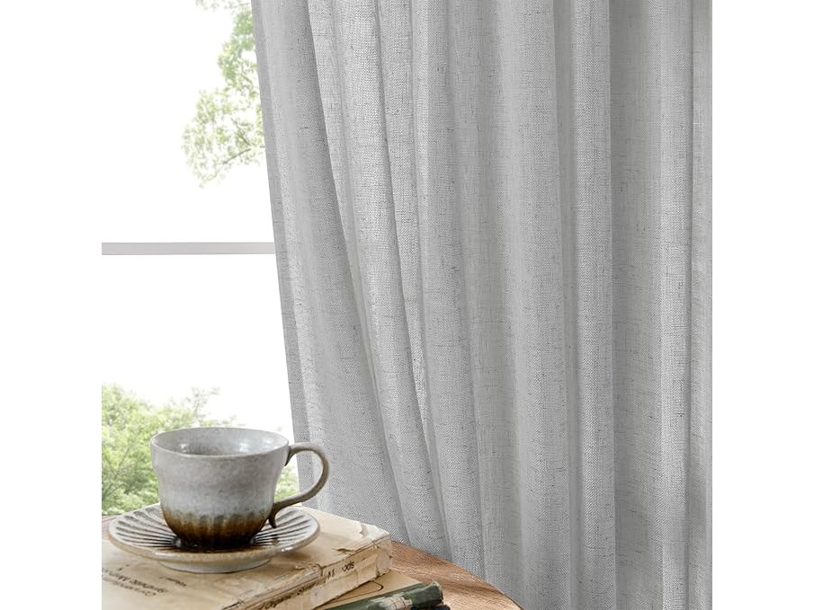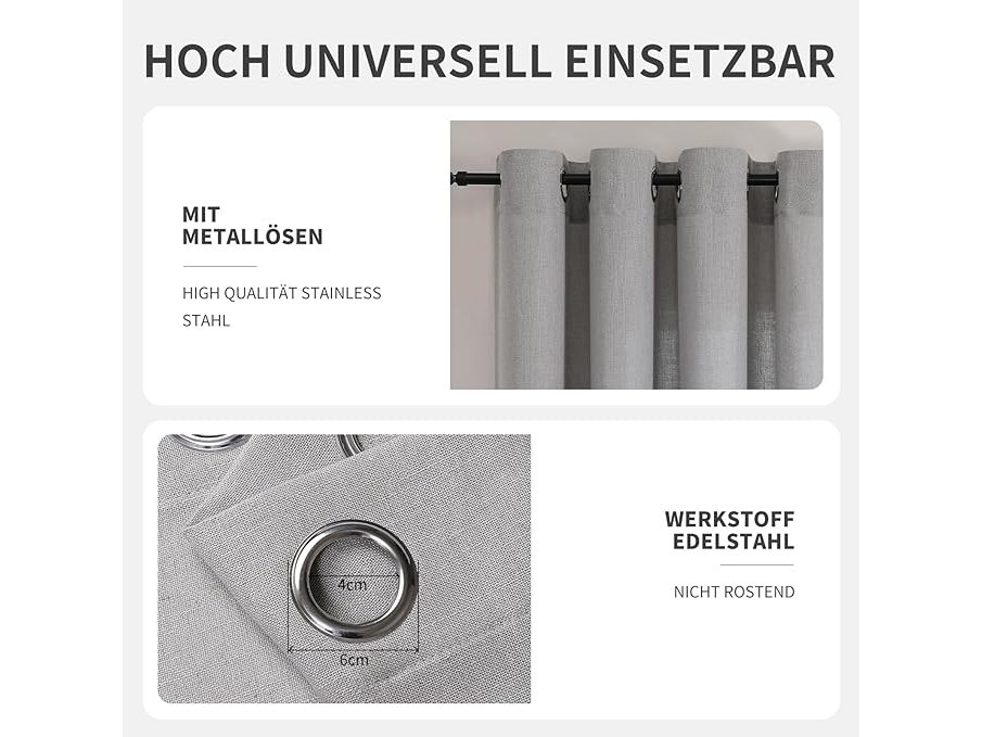 Ongeopend, Joydeco Transparant gordijn van linnen met ogen, set van 2 semi-ondoorzichtige gordijnen, 132 x 260 cm (b x h), grijs, lichtdoorlatend , B0D3FWYWF1