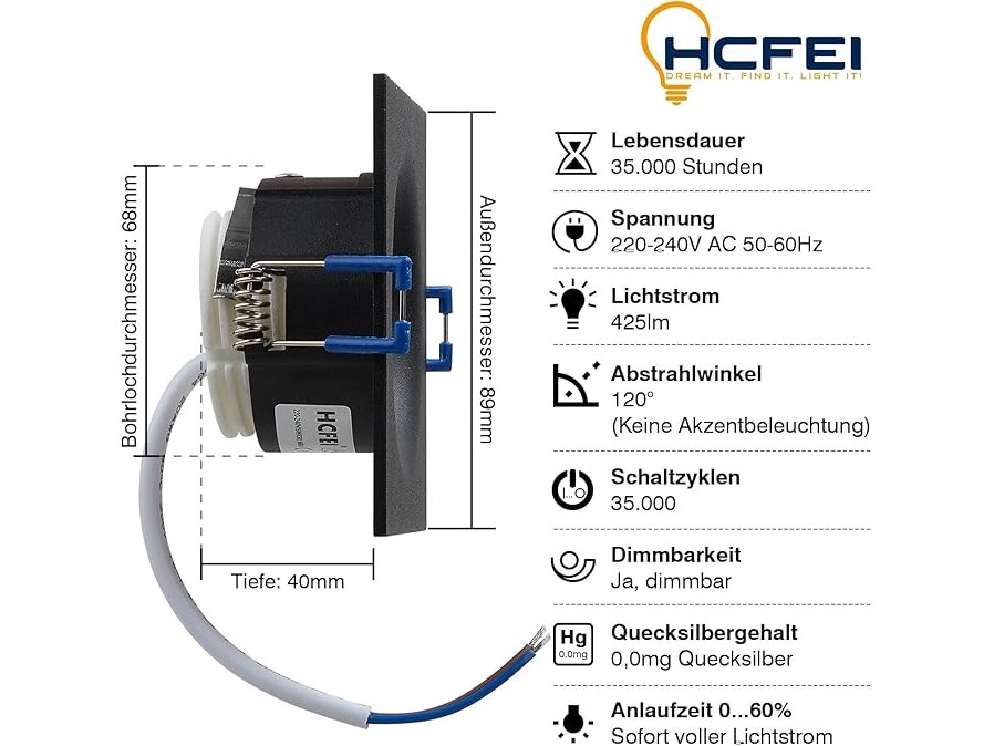 Ongebruikt, ok, werkt, HCFEI LED inbouwspots set hoekig - zwart 5 Watt dimbaar 230V plat niet-verblindend - inbouwlamp Ø 68mm boorgat - inbouwspot plafond spotlight (set van 6 - warm wit), B0DLB5KQ9Z