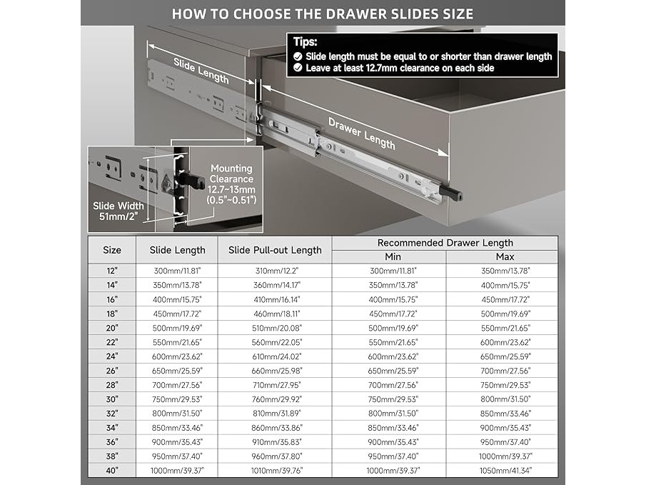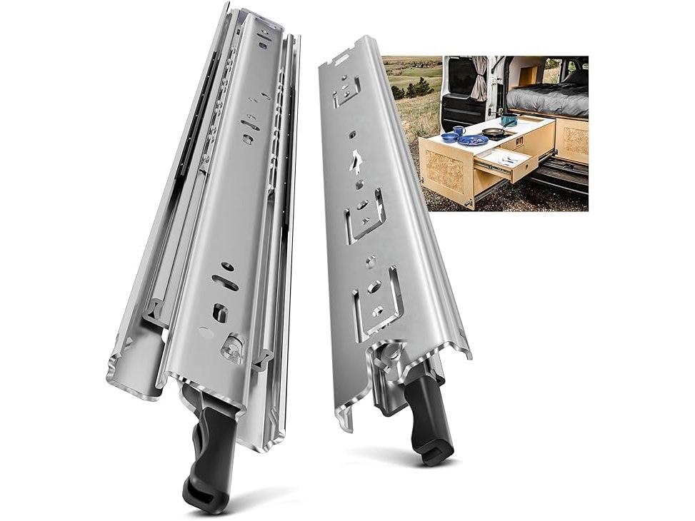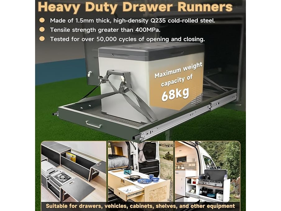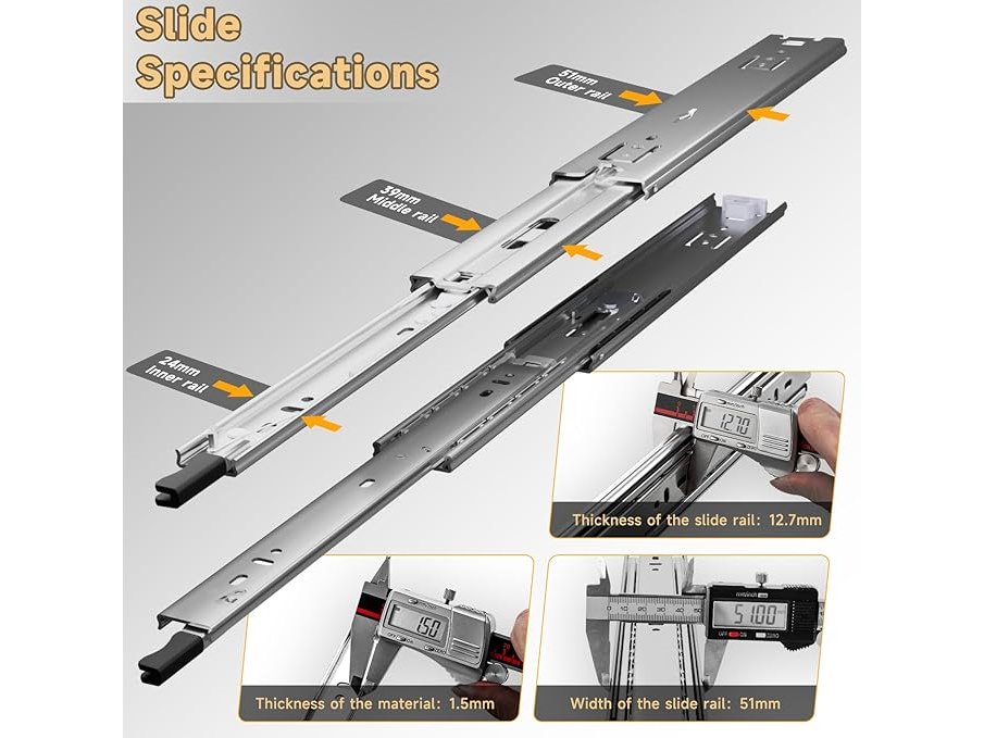 Ongebruikt, volledig, ok, AOLISHENG volledig uitschuifbare ladegeleiders met vergrendeling, zware uitvoering tot 68 kg, lengte 300/350/400/450/500/550/600/650/700/750/800/850/900/950/1000 mm, zijmontage, 1 paar,B095CQ7LGG