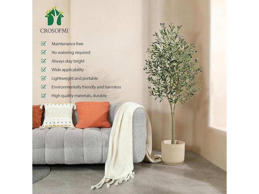 Ongebruikt, ok, CROSOFMI Kunstmatige olijfboom, 180 cm, grote nepplanten, kunstmatige zijden olijfplanten in pot voor binnen, kunstmatige tropische grote kunstplant geschikt voor thuiskantoor, woonkamer,B08YWSS7Z8
