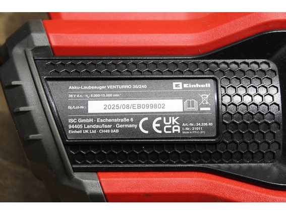 Gebruikssporen, getest en werkend, opvangzak ontbreekt,zonder accu & oplader, ok, Einhell Professionele accu bladblazer/-zuiger VENTURRO 36/240 Power X-Change (li-ion, 18 V, zuigvermogen 740 m³/u, blaasfunctie tot max. 240 km/u, ),B0BJDT8ZST