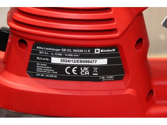 Lichte gebruikssporen, getest en werkend,exclusief accu en lader, ok, Einhell accubladblazer/zuiger GE-CL 36/230 Li E Solo Power X-Change (li-ion, 36 V, zuig-/blaasfunctie, turboschakelaar, incl. zuigbuis + blaasbuis ),B0873NCMFJ