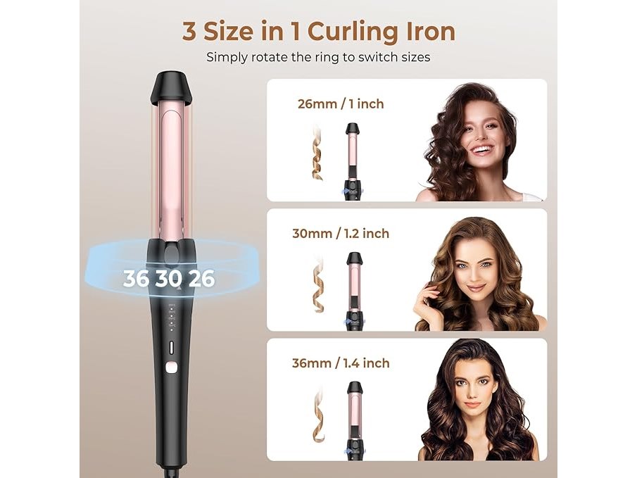 Ongeopend, ok, Krultang van 26/30/36 mm, 3-in-1 krultang voor kort en lang haar, draaibare ring om de lengte aan te passen zonder accessoires te verwisselen, dubbele spanning voor op reis (zwart-roze), B0DBHFGRJC