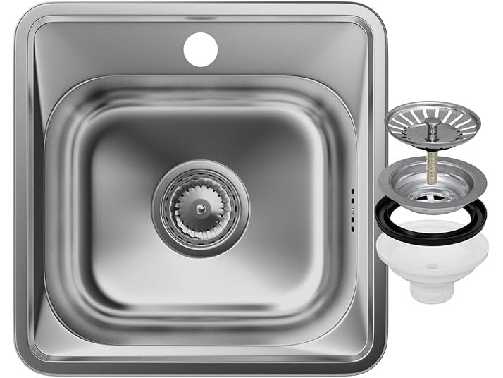 Ongebruikt, originele verpakking ontbreekt, ok, Granitan spoelbak met sifonset, stalen spoelbak 32 x 27 cm, enkele wasbak, keukenspoelbak 1 wasbak - vierkante spoelbak roestvrij staal,B0CGK131PT