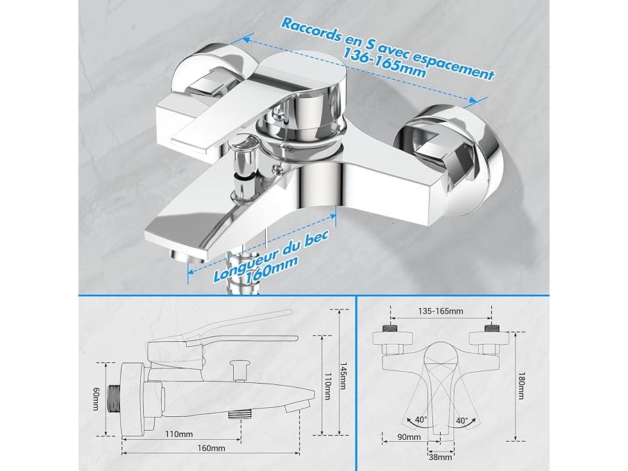 Ongeopend, ok, Dazone Badkamerkraan, Mengkraan/Douchekraan, Badkamerkraan/Mengkraan Messing, Bad/Wandmengkraan, Verchroomd, G1/2, B0CP3T788R