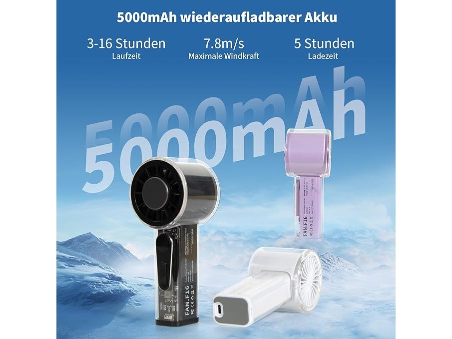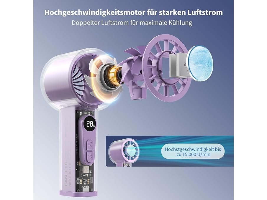 Ongeopend, Handventilator met ijskoeler, draagbare ventilator met 5000 mAh batterij, 6 snelheden, turboventilator met hoge snelheid, transparante behuizing, ideaal voor reizen, concerten en buitenactiviteiten, paars, B0F1MJY7W2