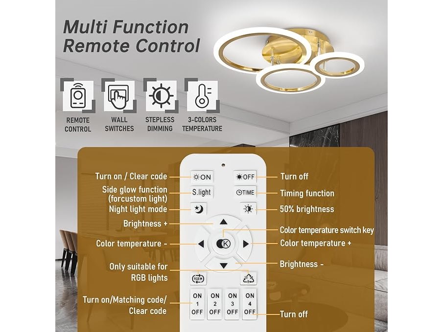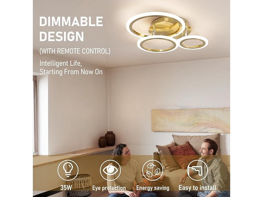 Ongeopend, LED-plafondlamp, dimbaar, 35 W, 58 cm, moderne plafondlamp met afstandsbediening, 3000 K-6500 K, 3 ringen, ronde slaapkamerlamp, LED-plafondlampen voor kantoor, keuken en eetkamer, B0DCZG835Z