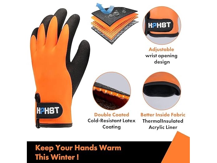 Ongeopend, HPHST Werkhandschoenen winter waterdicht thermo warme winterhandschoenen montagehandschoenen grip winterwerkhandschoenen werk dubbele laag nylon geïsoleerde handschoenen (oranje-3 paar,XL), B0C4J6Q3KT