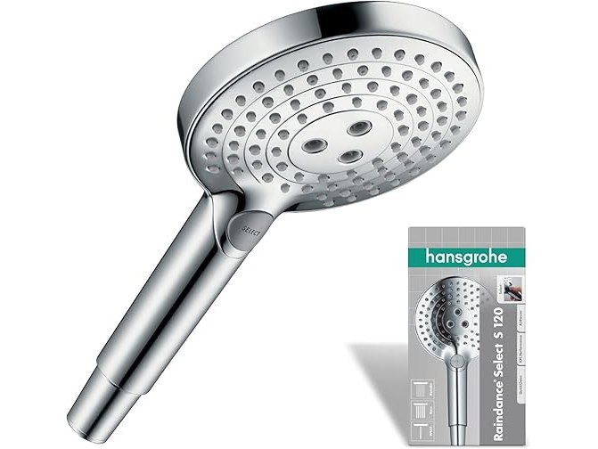 Ongebruikt, volledig, ok, licht beschadigde verpakking, Hansgrohe Raindance Select S 120 Handdouche, Douchekop met 3 Straalsoorten, chroom, 26530000, B00G44JQPQ