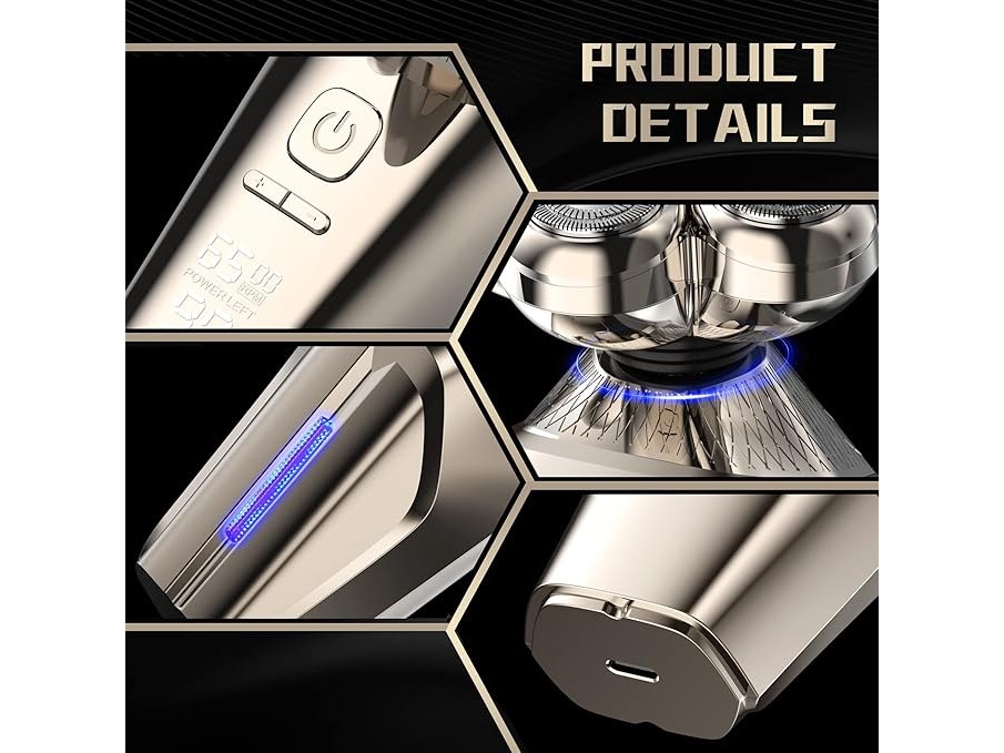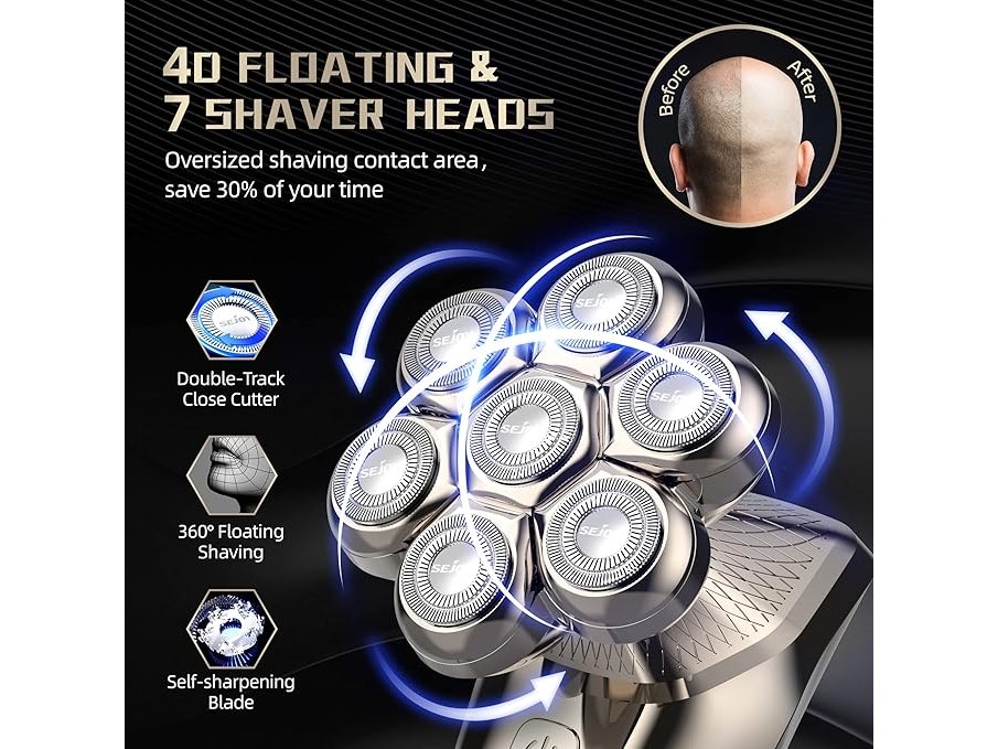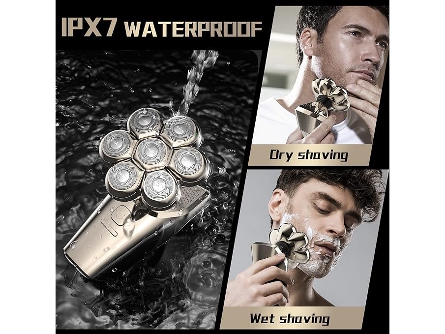 Ongeopend, Elektrisch scheerapparaat voor heren, 5-in-1, scheerapparaat met opzetstukken voor kaal hoofd, neushaar, massageborstel, scheerapparaat voor heren, oplaadbaar, IPX7, waterdicht, led display, scheerapparaat voor heren, B0BRKHXJBL
