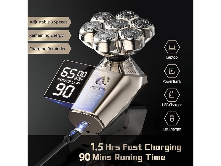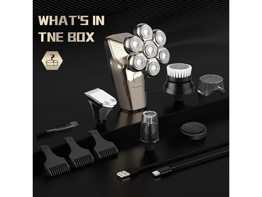 Ongeopend, Elektrisch scheerapparaat voor heren, 5-in-1, scheerapparaat met opzetstukken voor kaal hoofd, neushaar, massageborstel, scheerapparaat voor heren, oplaadbaar, IPX7, waterdicht, led display, scheerapparaat voor heren, B0BRKHXJBL