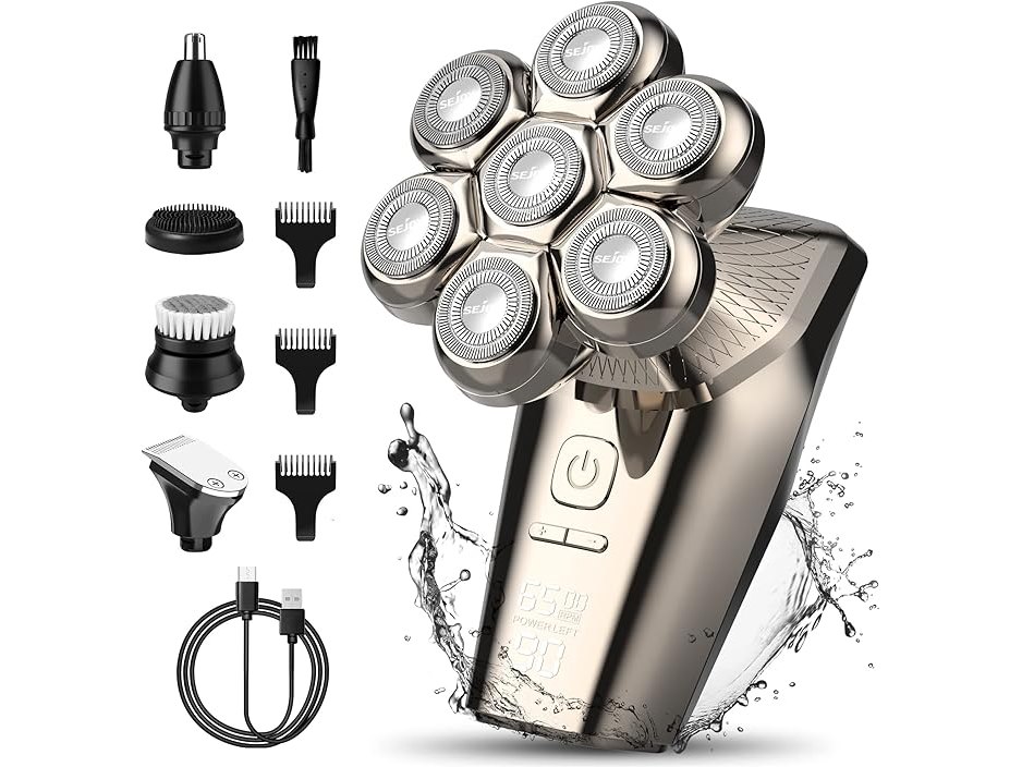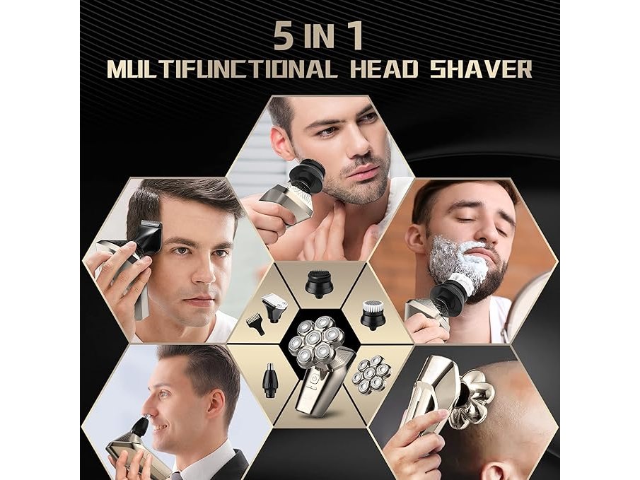 Ongeopend, Elektrisch scheerapparaat voor heren, 5-in-1, scheerapparaat met opzetstukken voor kaal hoofd, neushaar, massageborstel, scheerapparaat voor heren, oplaadbaar, IPX7, waterdicht, led display, scheerapparaat voor heren, B0BRKHXJBL