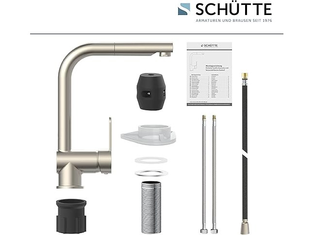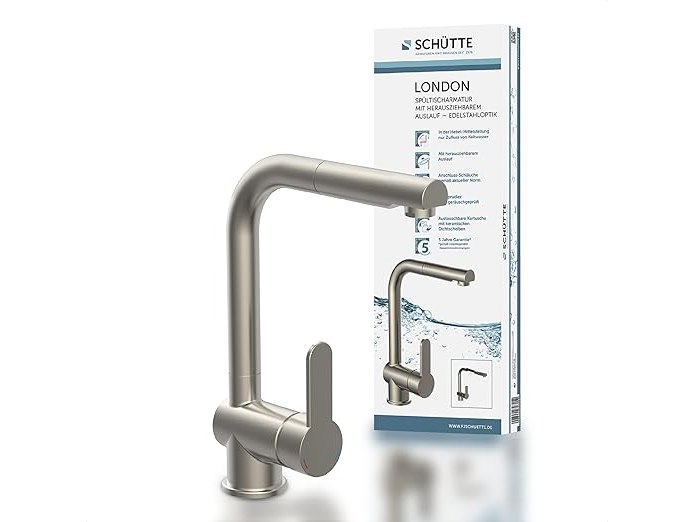 Ongebruikt, volledig, ok, SCHÜTTE London Keukenkraan met uitschuifbare douchekop, 360° draaibare kraan voor de keuken, mengkraan met éénhendelbediening, roestvrij staal, 29,7 cm,B00IRLXXBW
