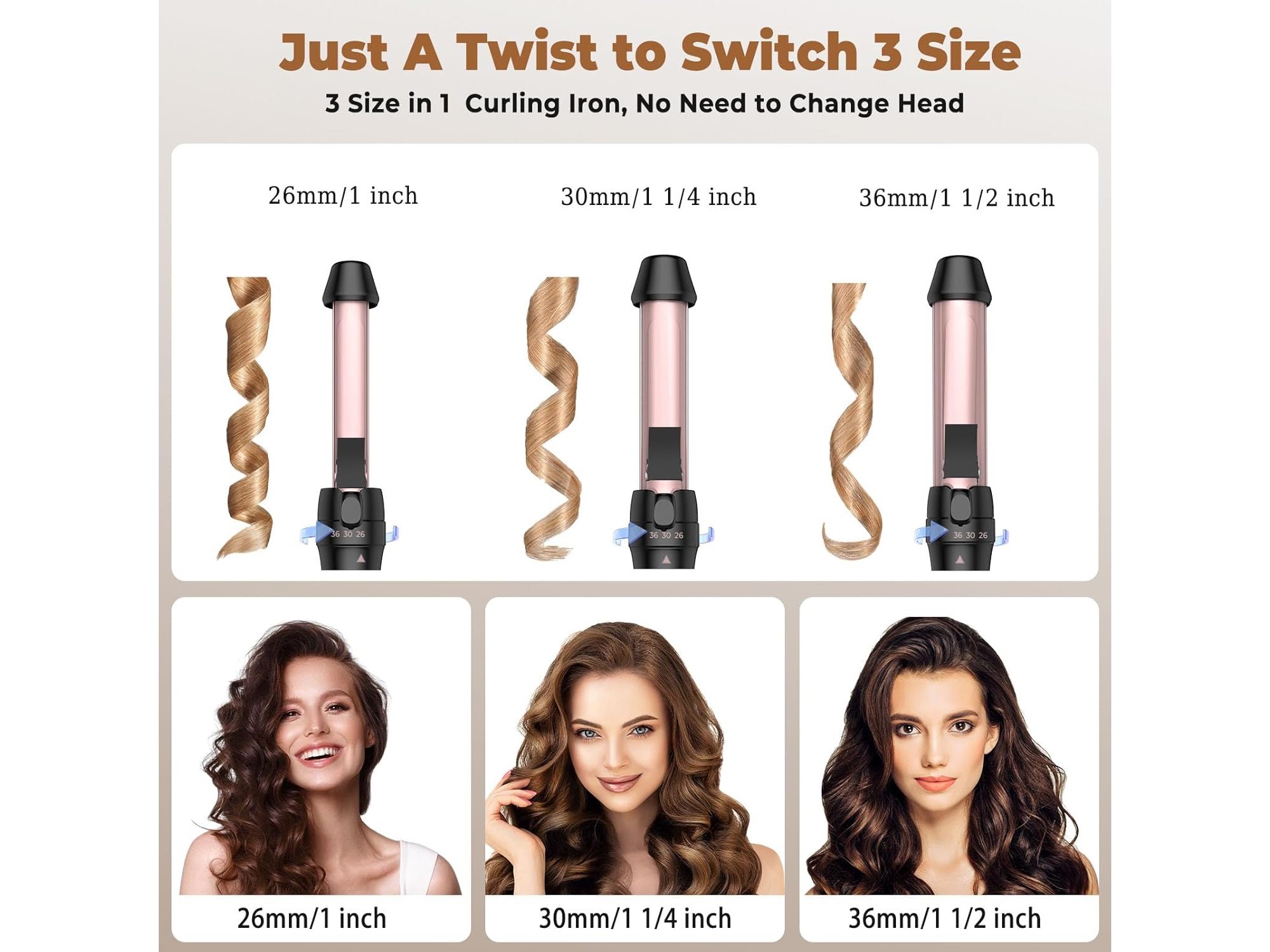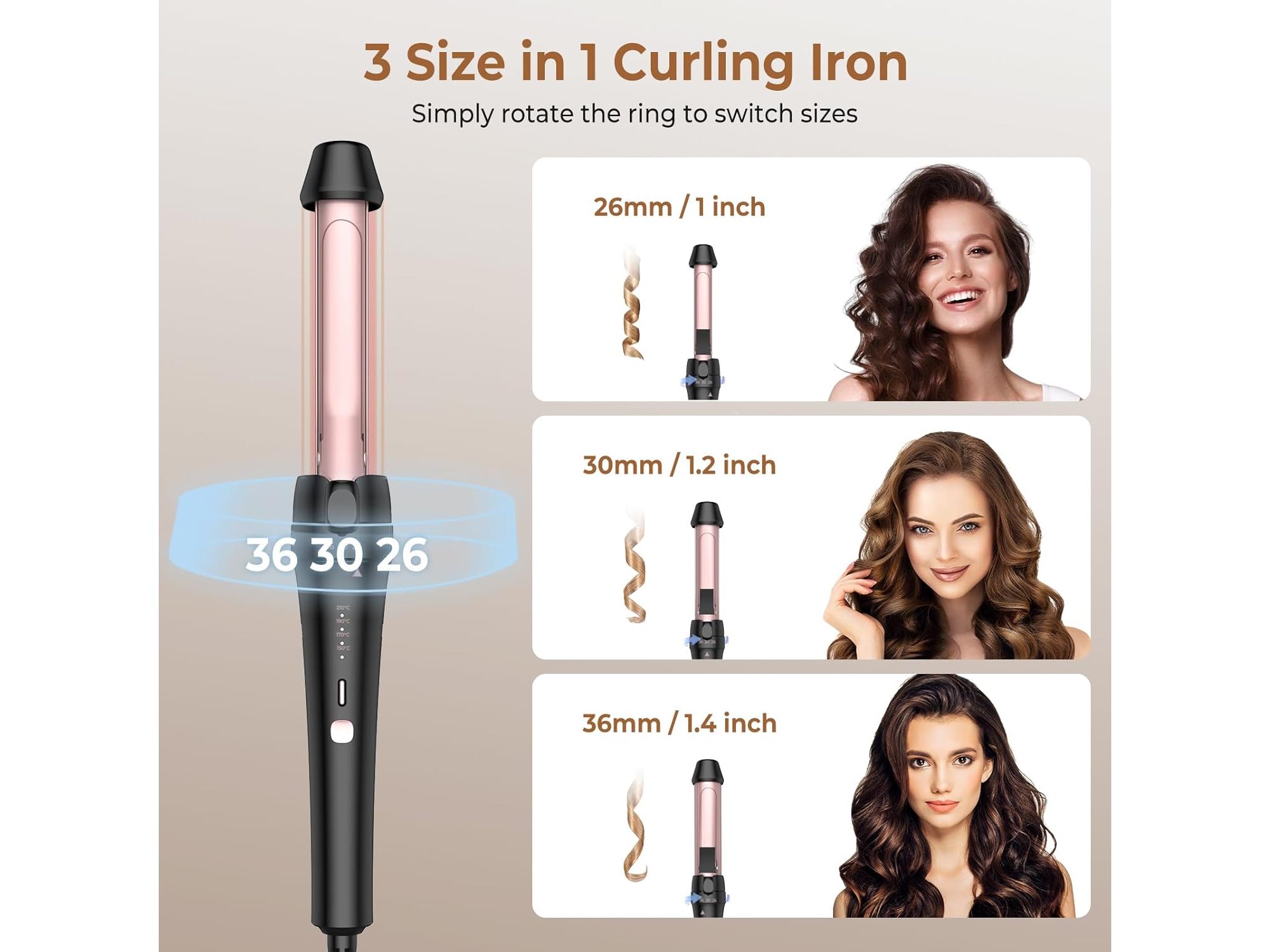 Ongeopend, 3-In-1 Krultang Voor Grote Krullen, 26/30/36mm Krultang Voor Kort En Lang Haar, Draaibare Ring Voor Het Veranderen Van De Grootte Zonder Accessoires Te Verwisselen , B0DBHHQDNM