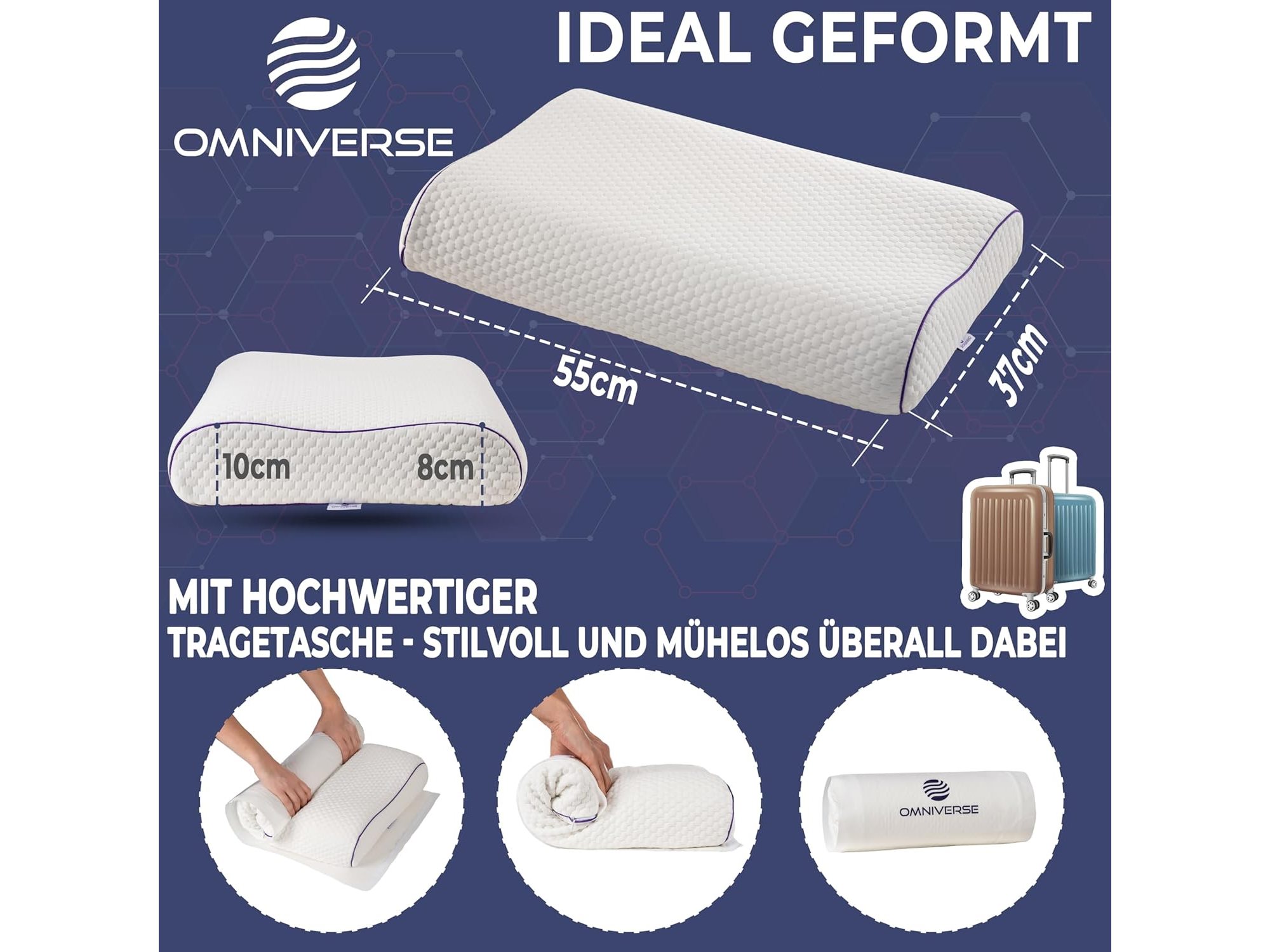 Ongeopend in vacuum, Omniverse, Middelsterk neksteunkussen tegen nekpijn, zijslaapkussen, rugslaperkussen, anti-snurkkussen, traagschuimkussen, ergonomisch hoofdkussen, 55 x 37 x 10/8 cm, wit, B0DZ7XN88P