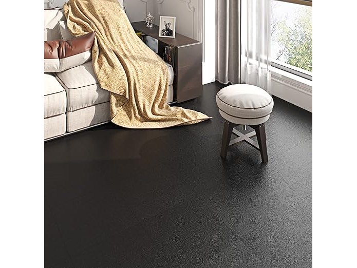 Ongeopend, in seal, 6 x FunStick Zwarte Schil en Stok Vloertegel Waterdicht 30x30cm 15 Pack Zwart Vinyl Vloeren Tegels Schil En Plak Op Vloertegels Voor Badkamer Vloertegel Keuken Laminaatvloeren Sticky Linoleum Tegels, B09WZSFG1V