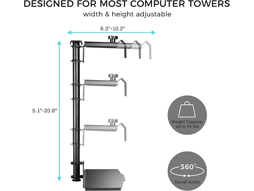 Ongebruikt, volledig, ok, EUREKA ERGONOMIC PC-houder voor onder het bureau, 360 graden draaibare computerstandaard, in hoogte en breedte verstelbaar, CPU-houder tot 20 kg, geschikt voor de meeste computerkasten, zwart, B07MV3GVCK