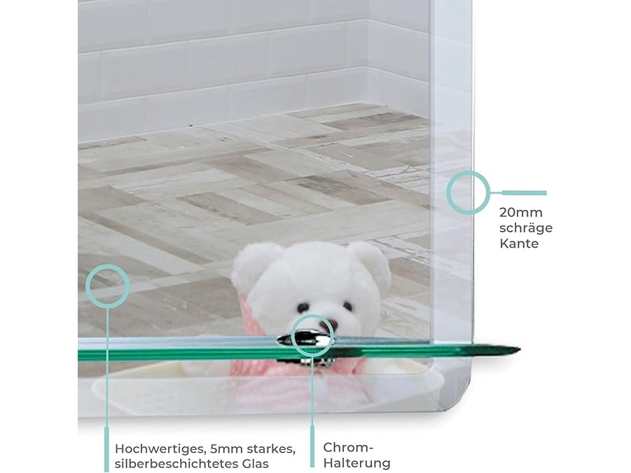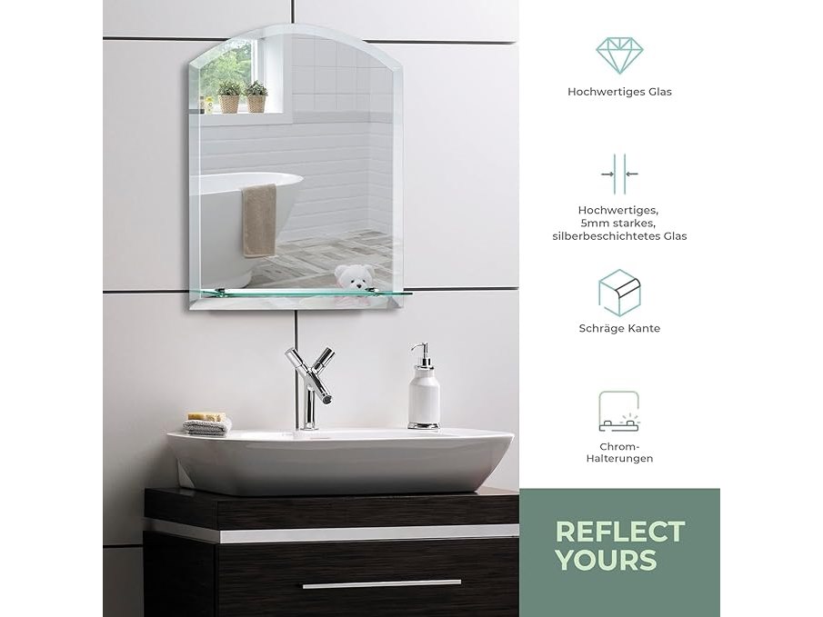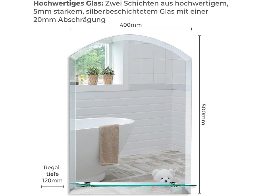 Ongeopend, ok, Neue Design afgeronde badkamerspiegel - planchet - wandmontage - elegant eenvoudig ontwerp - eigentijdse afgeschuinde randen - 50cm x 40cm x 1,5cm (HxBxD),B06Y49RD19