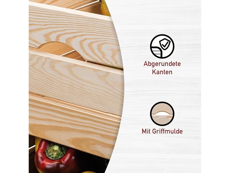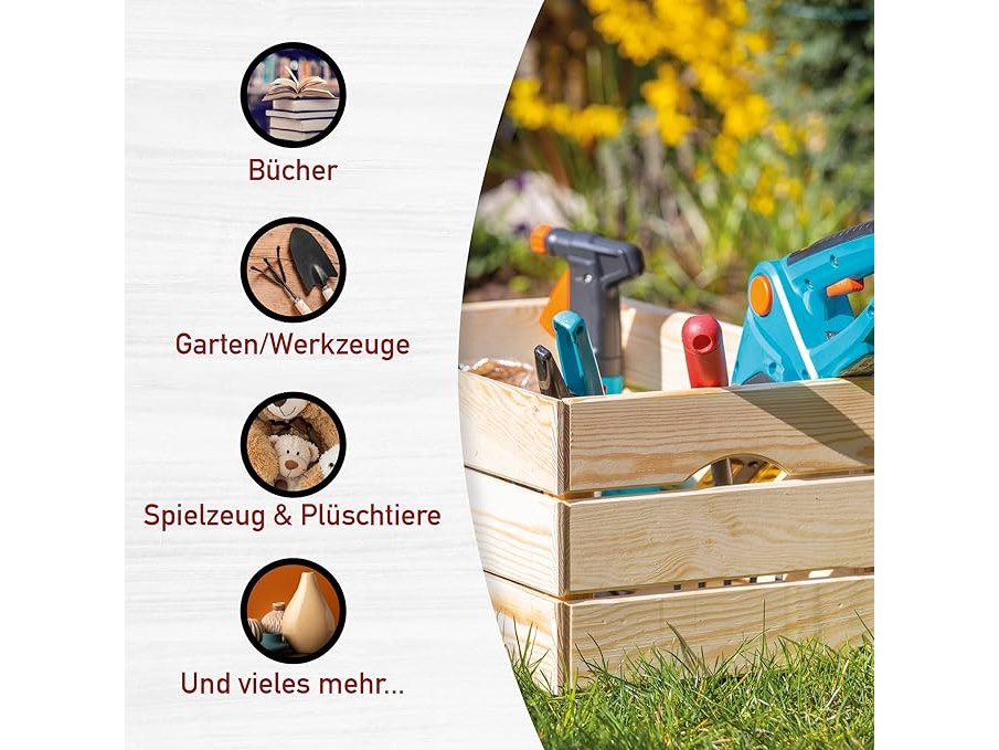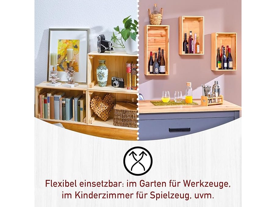 Ongebruikt, ok, Inter Link - Houten doos, stapelbare doos, massief hout, opbergdoos, voor fruit, groenten, wijn, tuin, badkamer, speelkamer, ruimtebesparend, praktisch, 65 x 31,5 x 23 cm, Valloni L, B0CGRVPV3Y