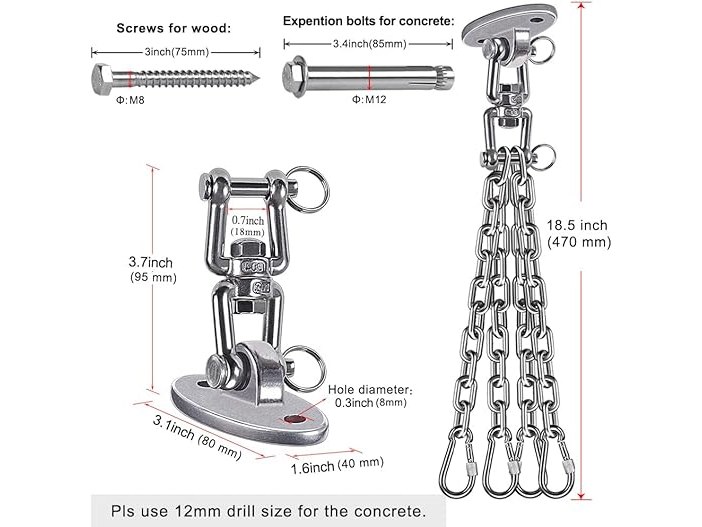 Ongeopend, ok, licht beschadigde verpakking, BeneLabel Bokszakhanger, zware zakhouder, bokszakhanger, bokszak-kit, bokszakhouder, zware zak muurbevestiging, bokszakaccessoires voor balk, 400 kg capaciteit, B08VGCXNY8