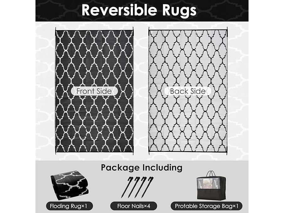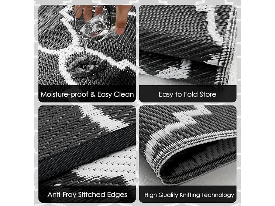 OIGAE Outdoormat, waterdicht, omkeerbaar, vuilafstotend, licht, picknickdeken van geweven kunststof, strandmat voor camper, camping (grijs, 150 x 240 cm), B0CKVQ86MS