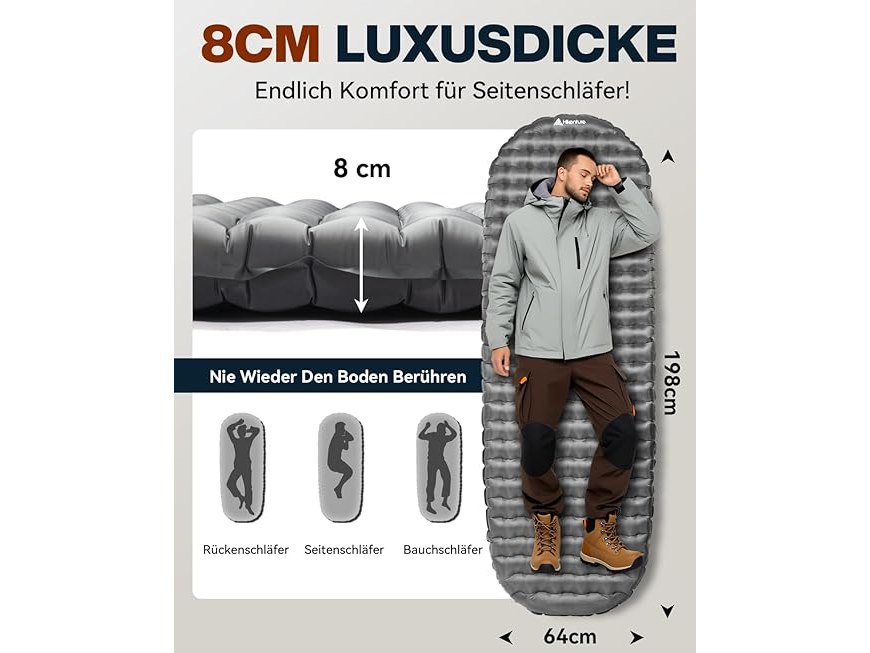 Ongebruikt, ok, HIKENTURE 6.2 R-waarde ultralichte opblaasbare slaapmat, 8 cm dik, klein formaat, geschikt voor alle seizoenen, outdoor, wandelen, B0CRV2X3RZ