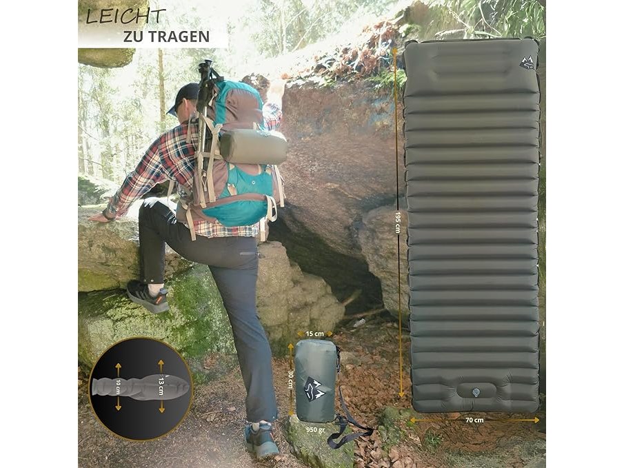 Ongeopend, ok, Bärberg Zelfopblazend luchtmatras met voetpomp, slaapmat, ultralicht luchtmatras voor kamperen, compact en modern voor buitenactiviteiten, wandelen, tent, festivals, zwembad (olijfgroen), B0D268GNDP