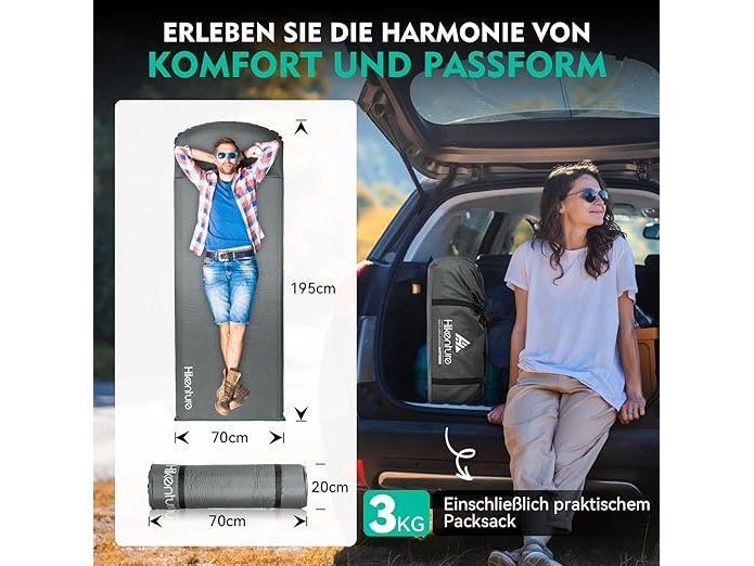 Ongebruikt, volledig, ok, HIKENTURE Zelfopblazende, 8 cm dik, campingmatras van schuim, zelfopblaasbaar luchtmatras, comfortabele slaapmat voor outdoor, tent, wandelen, A1, B0CRRGZMZF