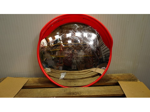 Gebruikt, wrijfsporen, Relaxdays Verkeersspiegel 60 cm, Weerbestendig, voor Binnen- en Buitengebruik met Houder, Ronde Veiligheidsspiegel, Rood, B07HP83SJ9