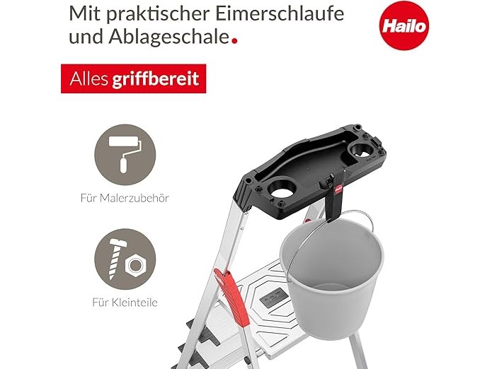 Ongebruikt, volledig, ok, licht beschadigde verpakking, Hailo L80 ComfortLine aluminium 4-trapsladder - inklapbare ladder met 4 XXL treden en opbergbak - werkhoogte tot 285 cm - gewicht 4,4 kg - zilver