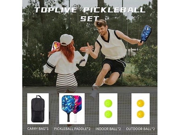 Ongeopend, ok, Toplive Pickleball Racket Set, Pickleball Racket Set met 2 rackets, Fiberglass Pickleball rackets, 4 Pickleballballen en Opbergtas, B0CY1RSRVY